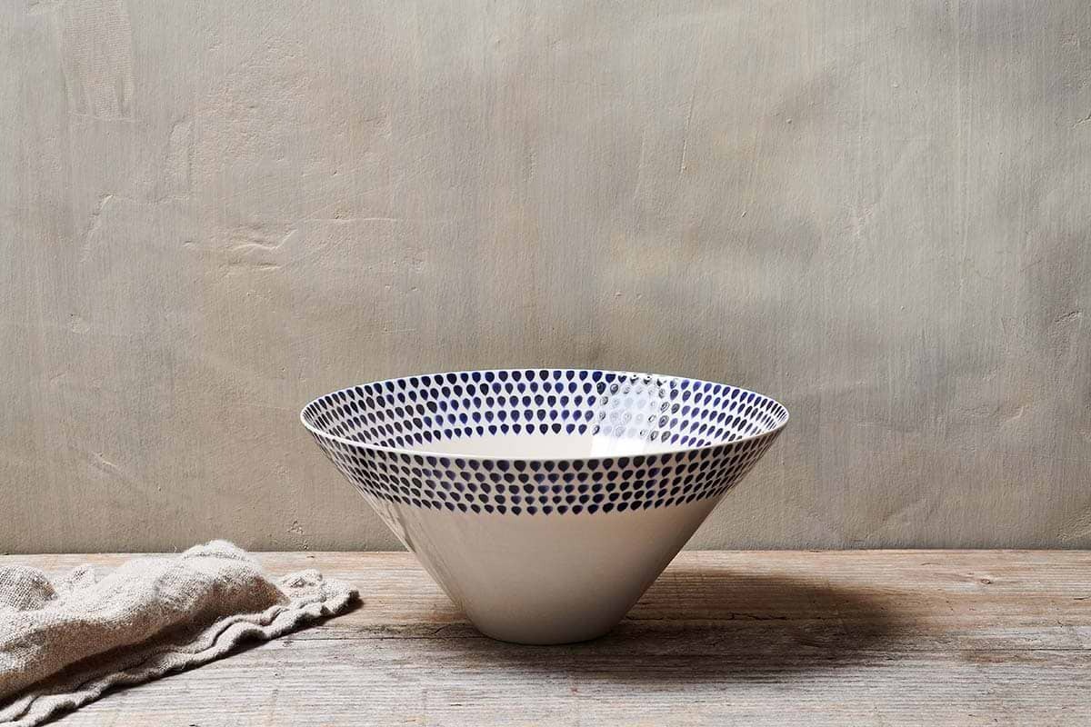 Indigo Drop Serving Bowl - Cream & Indigo - Large
