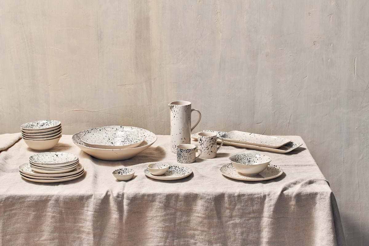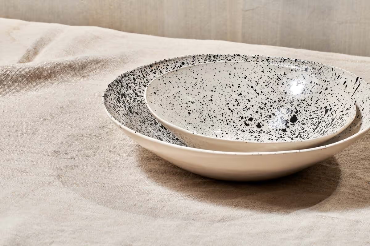 These striking artisan made serving, bowls are finished with an eye-catching black splatter design. The smooth glazeand organic contours blend perfectly together. They look great filled with vibrant salads or puddings. The collectionsare painted and shaped by hand incorporating indigenous and contemporary influences.