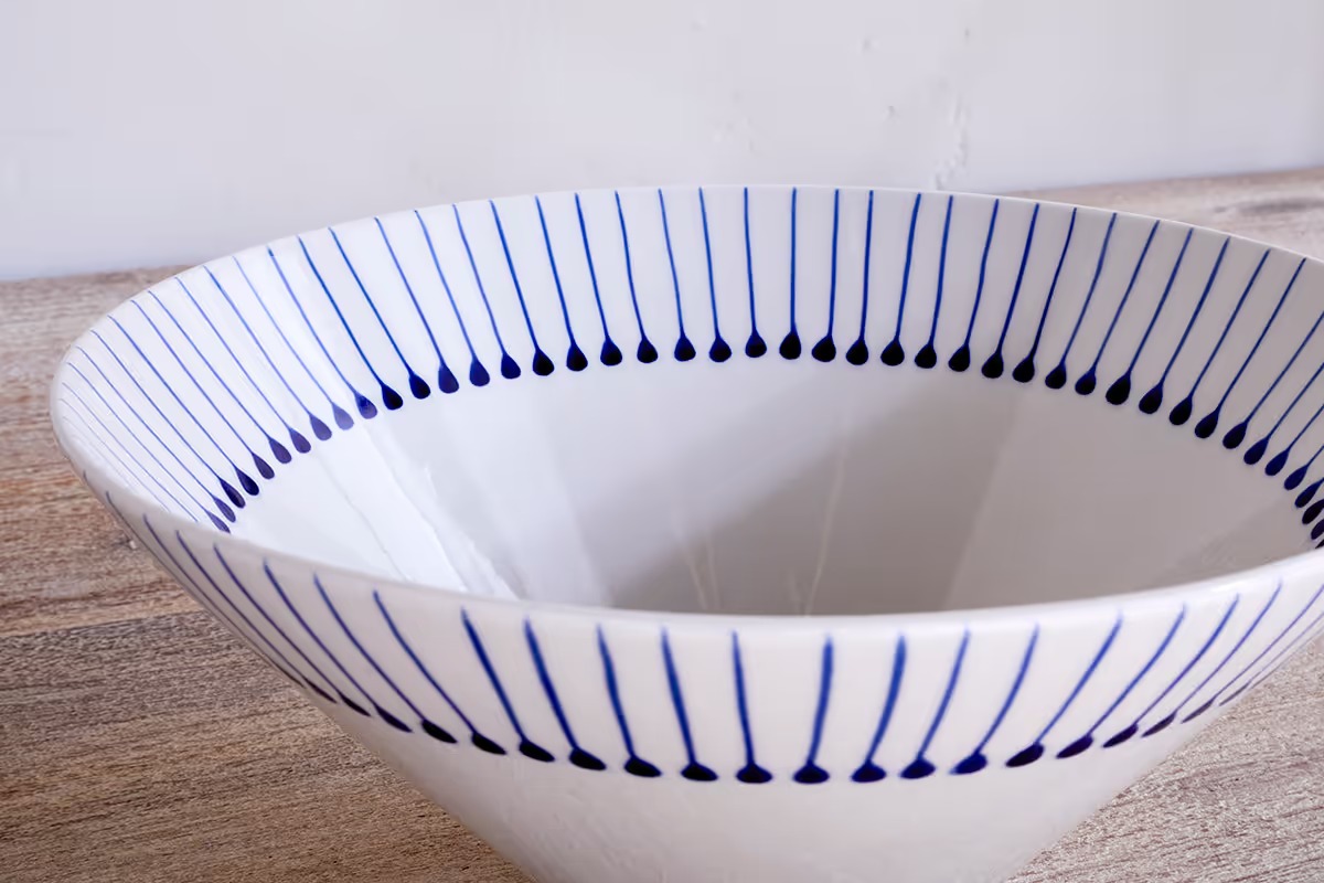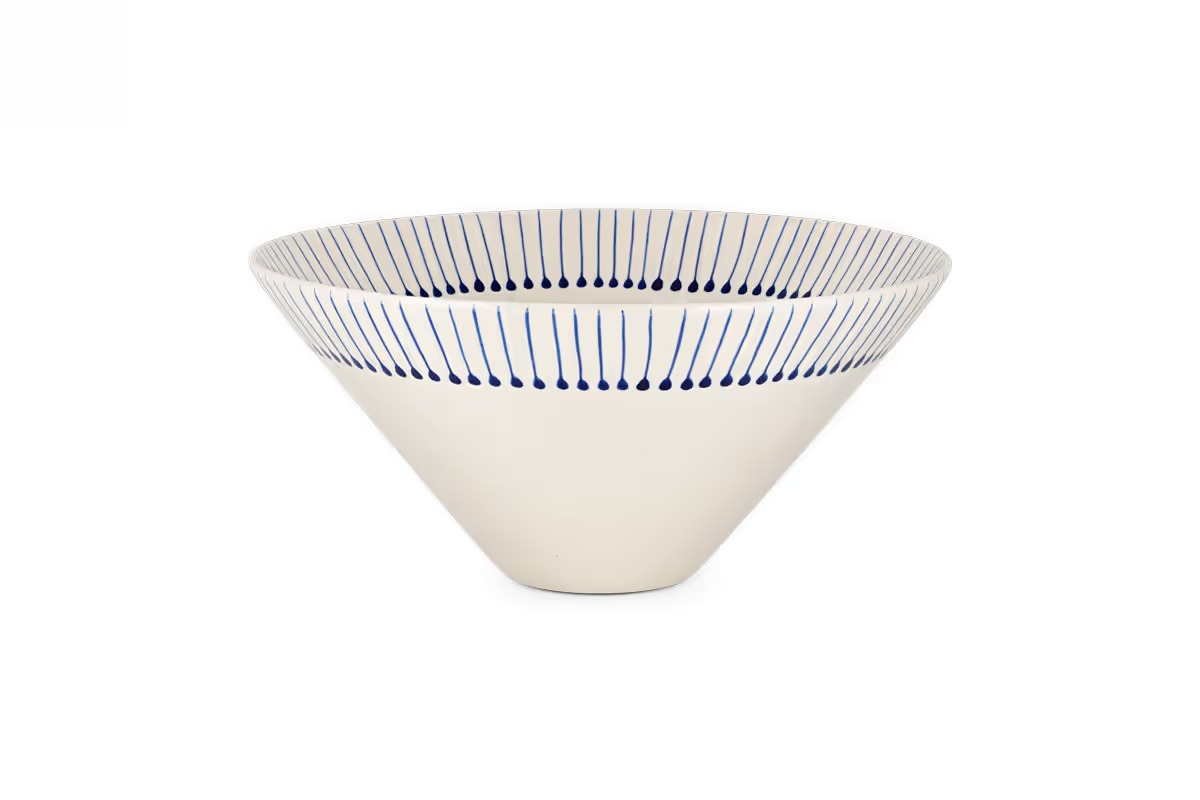 Our lba Serving Bowl is handmade from white clay and delicately hand-painted in Vietnam with an intricatematchstick patern. Light and fresh, it's part of our lba collection, offering a clean, modern design. Combiningartisanal craftsmanship with practical functionality, it adds a touch of elegance to your every day. Available in two sizes.