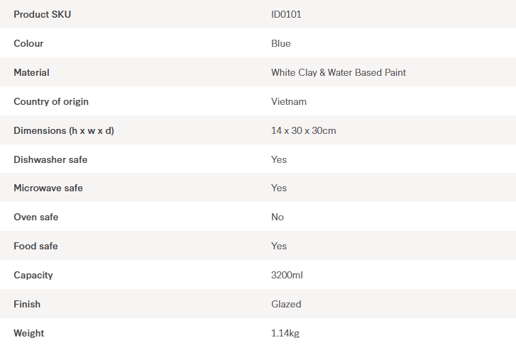 We adore this beautiful ceramic table and serveware. Each one is hand painted with this pretty indigo drop designand handmade in Vietnam, using age old traditions that have remained unchanged for generations. The collectionsare painted and shaped by hand incorporating indigenous and contemporary influences.