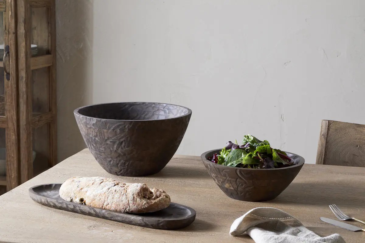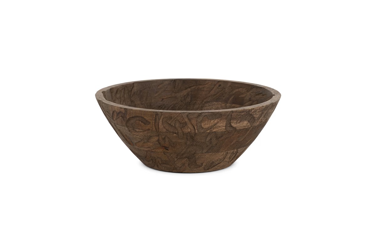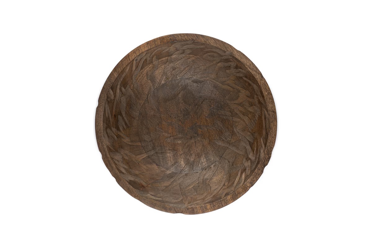 A beautifully handcrafted piece, our Nyati Mango Wood bowl is perfect for both serving and display. Made fromsustainable mango wood, this large bowl features rustic hand-etched detalling, adding texture and character. ldeal foiserving food or as a stylish base for home accessories, its versatile design makes it a standout addition to any tableor countertop.