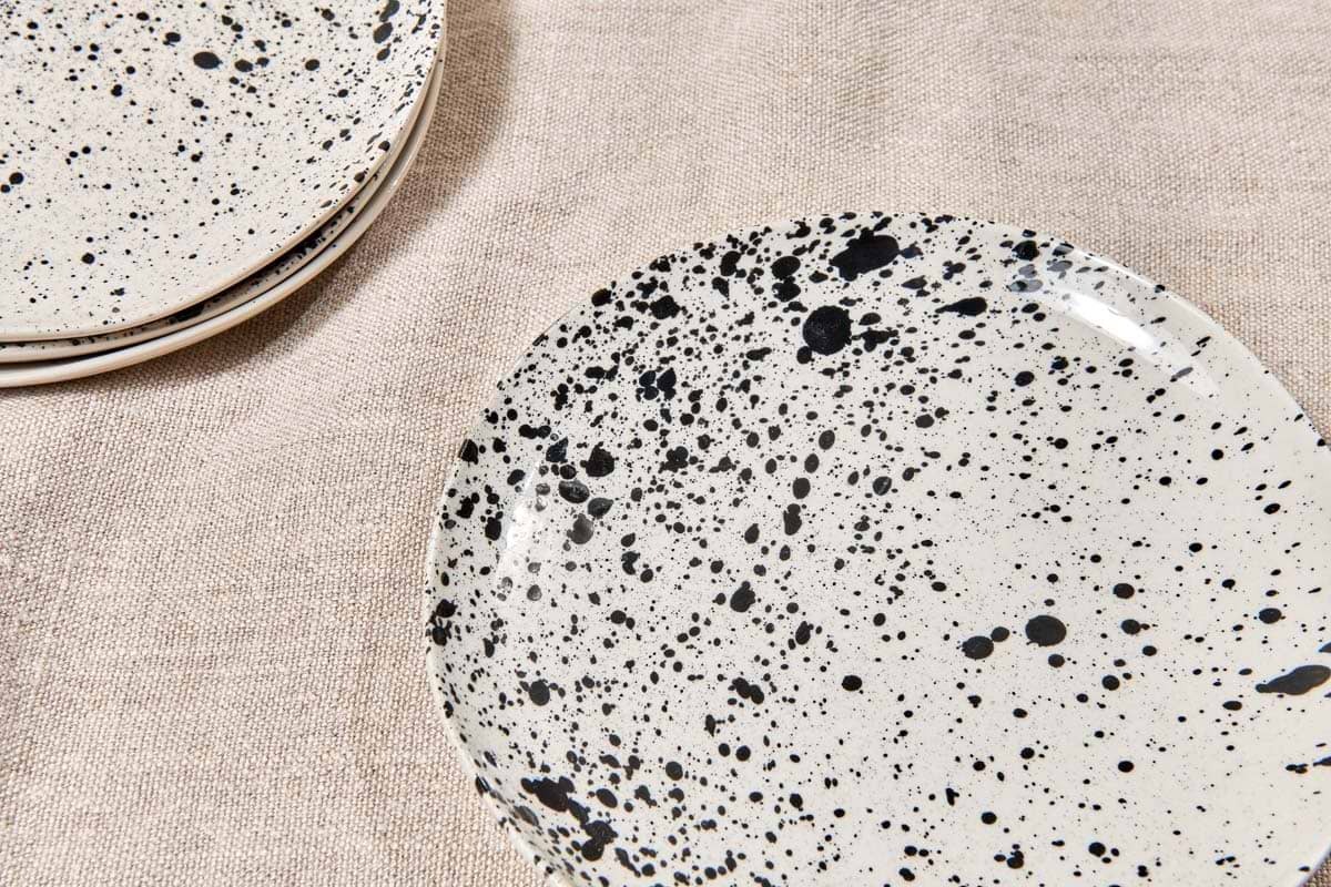 These eve-catching Ama plates are handmade from stoneware using traditional techniques. Each plate is decoratedby hand with a striking black splatter finish. The collection brings playful style to a table.These ceramics are handmade in Vietnam by skilled artisans, using a wealth of techniques some that are thousandsof vears old. The collections are painted and shaped by hand incorporating indigenous and contemporaryinfluences.