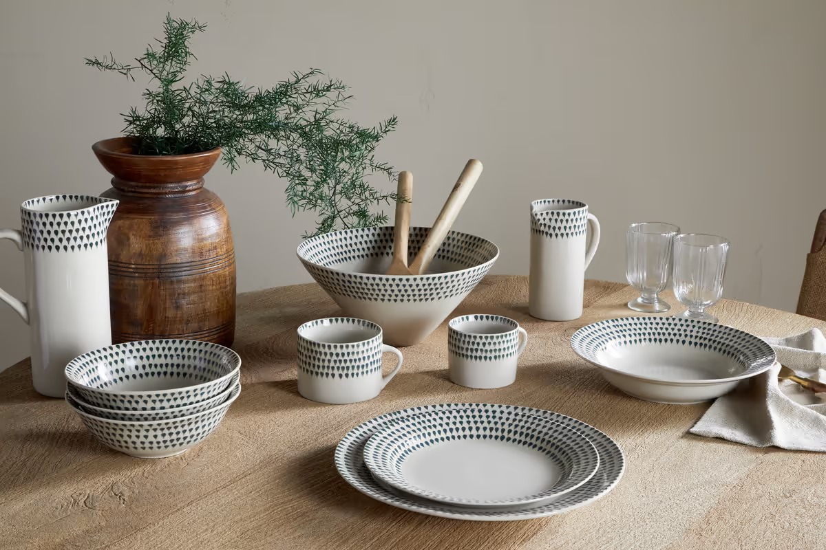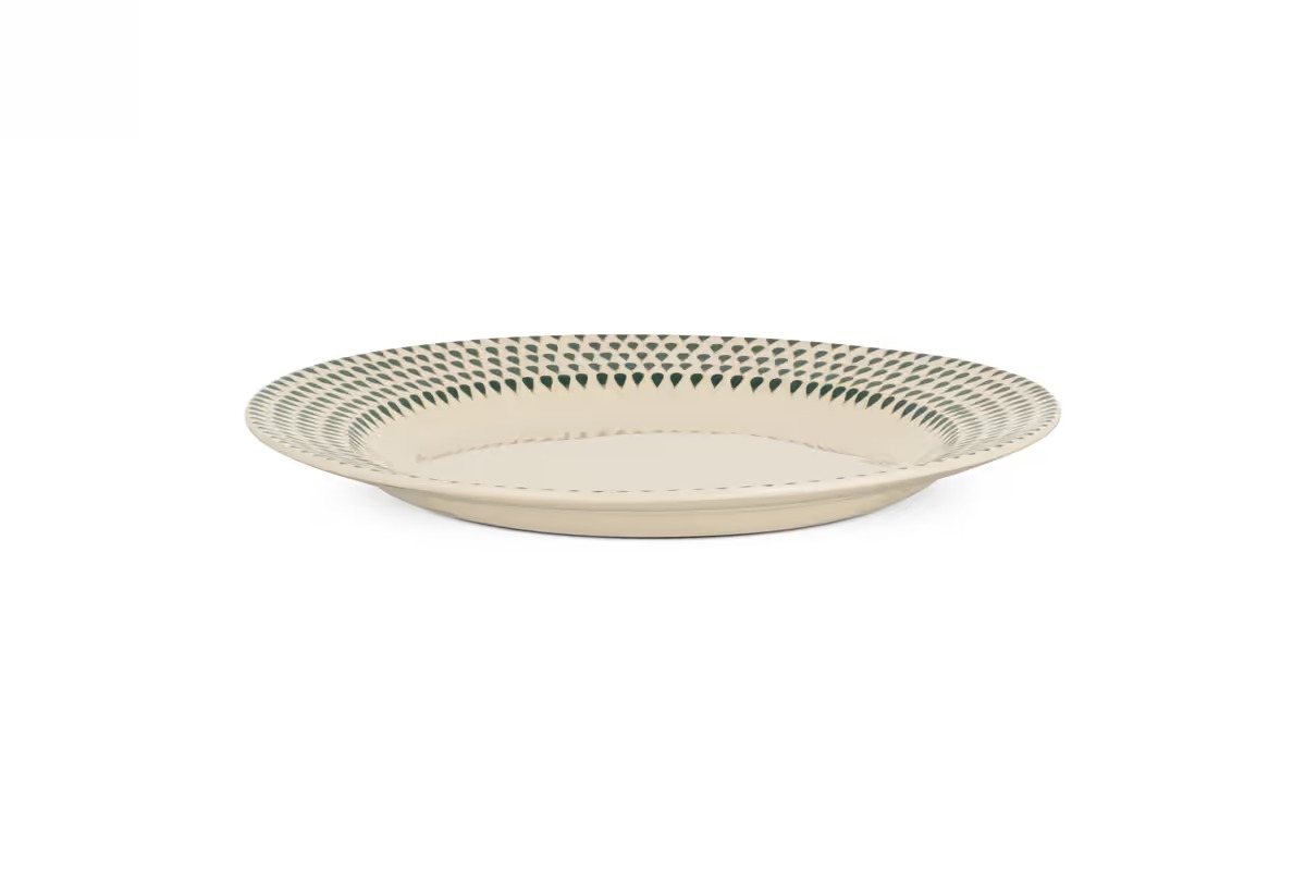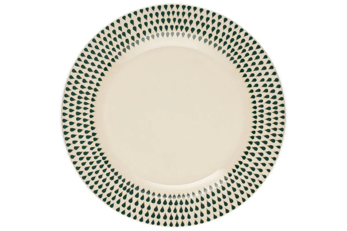 Striking in its simplicity, the Juniper Drop ceramic dinner plate features a soft, organic shape and a natural greendrop pattern. The deep juniper tone brings a calming, contemporary edge to the table, while the bold design addsvisual interest. Designed to stand alone or mix beautifully with the matching, pieces, it-s a versatile piece for everydaymeals or more elevated dining.